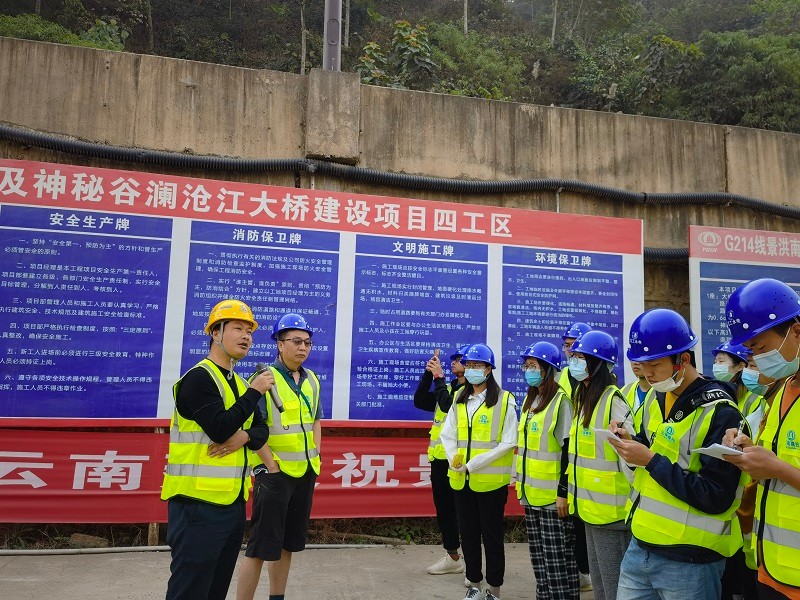 3月9日上午,昆明理工大學(xué)師生到云鐵集團(tuán)G214線景洪市神秘谷瀾滄江大橋項(xiàng)目施工現(xiàn)場(chǎng)觀摩學(xué)習(xí)。
