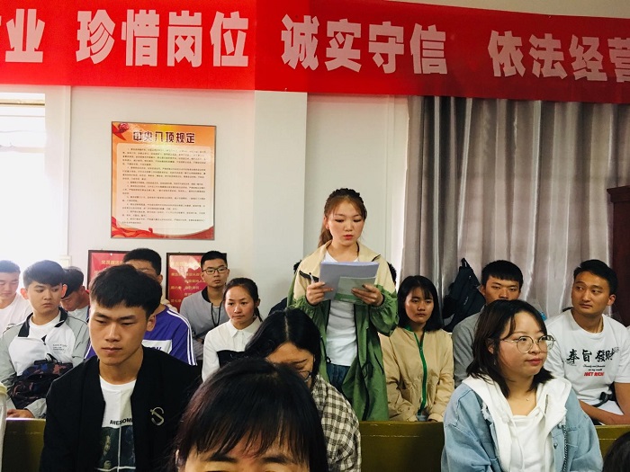 公司領(lǐng)導(dǎo)講解了集團及總公司的發(fā)展形勢,介紹了公司相關(guān)管理制度,對新員工進行安全生產(chǎn)三級教育,新員工代表就學(xué)習(xí)情況、對公司的了解和今后的工作學(xué)習(xí)計劃進行交流發(fā)言。