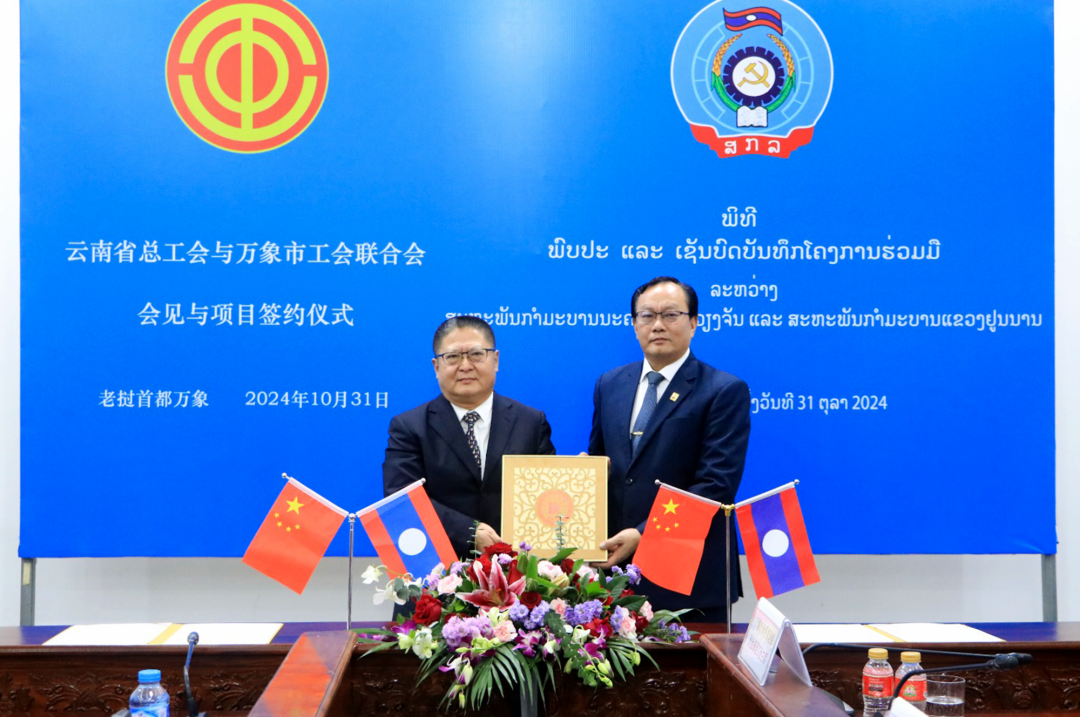 10月31日,云南省總工會與老撾萬象市工會聯(lián)合會在老撾首都萬象簽署開展《中國云南省總工會和老撾首都萬象市工會聯(lián)合會關(guān)于開展“一帶一路”共建項目示范性勞動和技能競賽框架協(xié)議》,以推動“一帶一路”項目共建,提升職工勞動技能。這是云南省總工會和萬象市工會聯(lián)合會之間,首個兩地工會聯(lián)動、兩國職工參與的競賽。