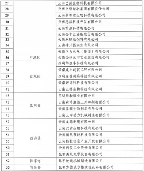 2019年昆明市企業(yè)技術(shù)中心企業(yè)名單